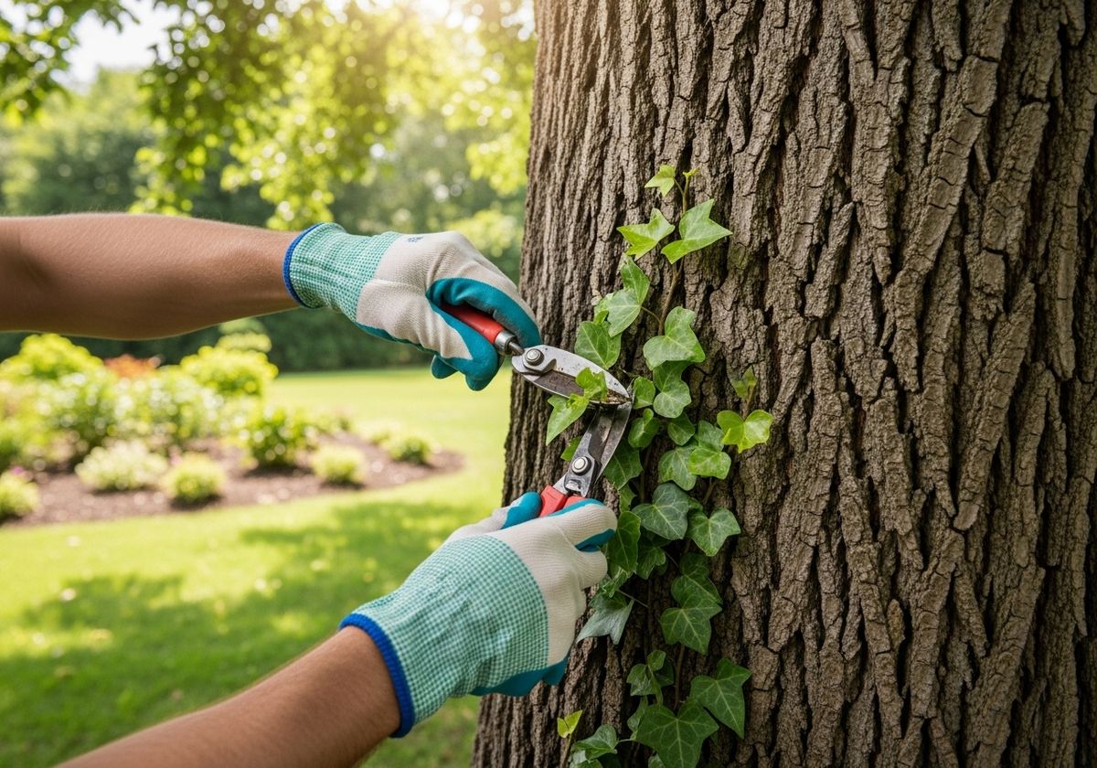 Manual Removal: Cut the ivy vines at the base of the tree and carefully peel them away from the bark. Be sure to remove as much of the root system as possible to prevent regrowth.